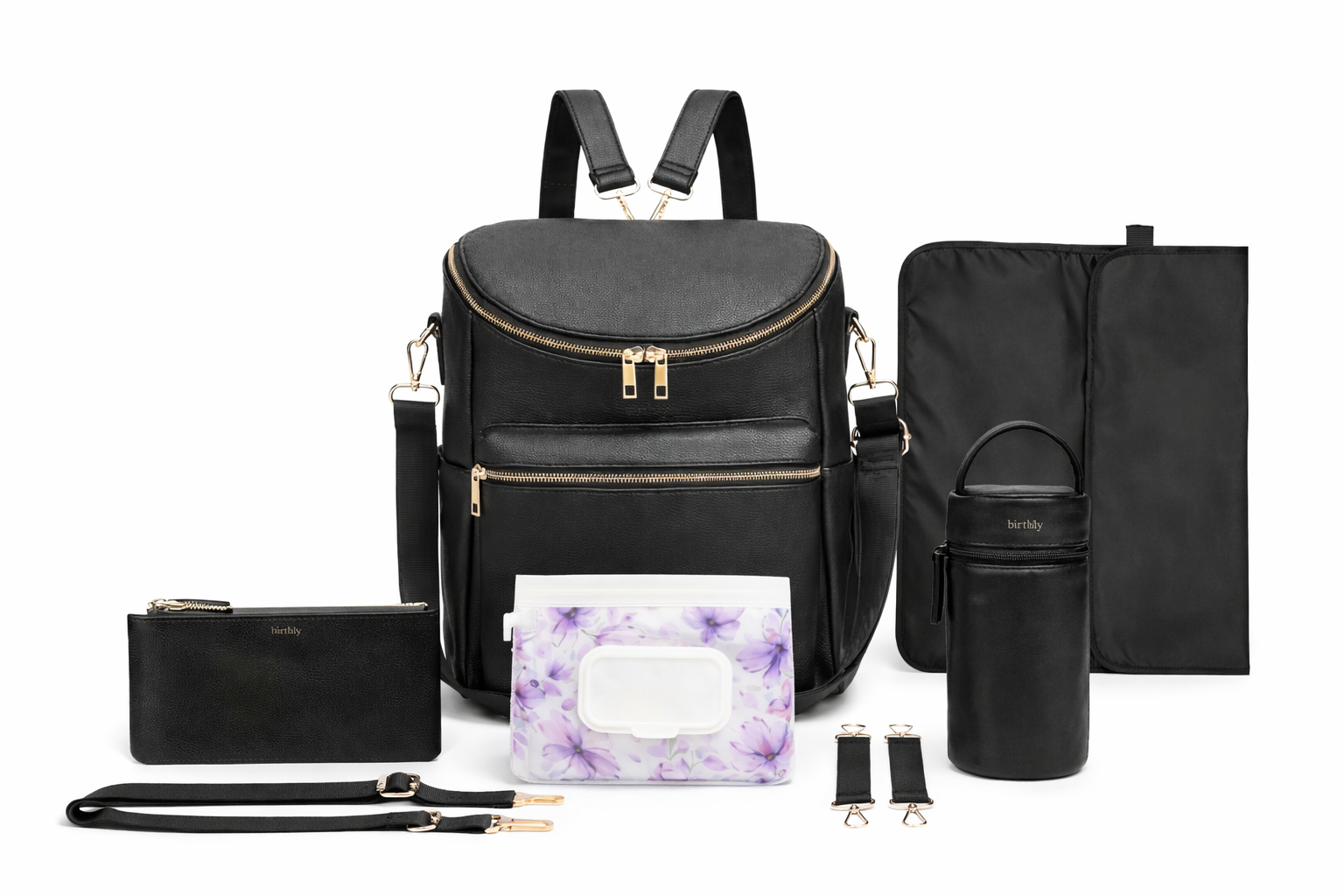 Crafted from high-quality vegan leather with elegant gold hardware, this versatile nappy bag can be worn as a backpack or cross-body bag, making it perfect for everyday outings, travel, and hands-free parenting.